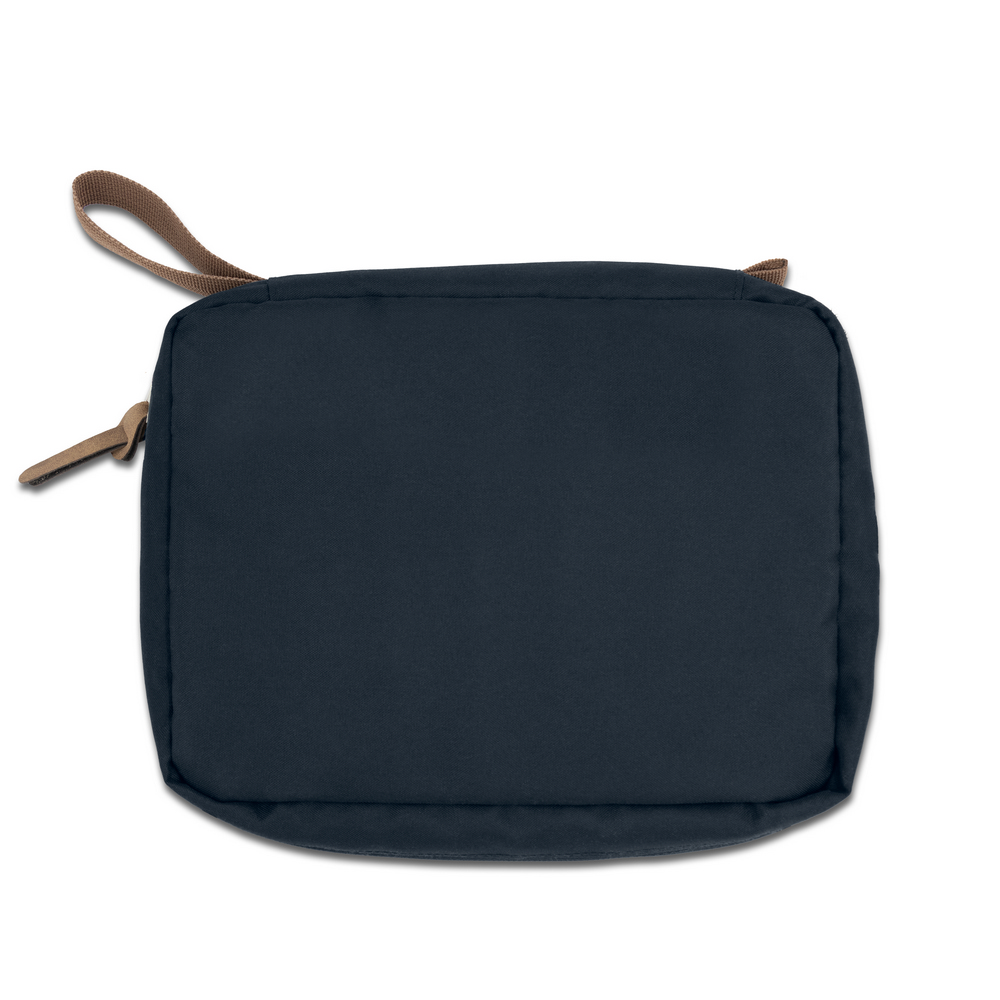 Die RPET Kosmetiktasche ist der perfekte Imageträger für Ihr Unternehmen. Mit ihrer eleganten dunkelblauen Farbgebung und der hochwertigen Verarbeitung aus 300D RPET bietet sie nicht nur ein stilvolles Design, sondern auch praktische Funktionalität. Die drei Innenfächer mit Reißverschluss und zusätzlichen kleinen Fächern organisieren Kosmetikartikel und erleichtern den Alltag ваших Kunden. Der integrierte Haken für das Aufhängen macht sie zudem ideal für Reisen.